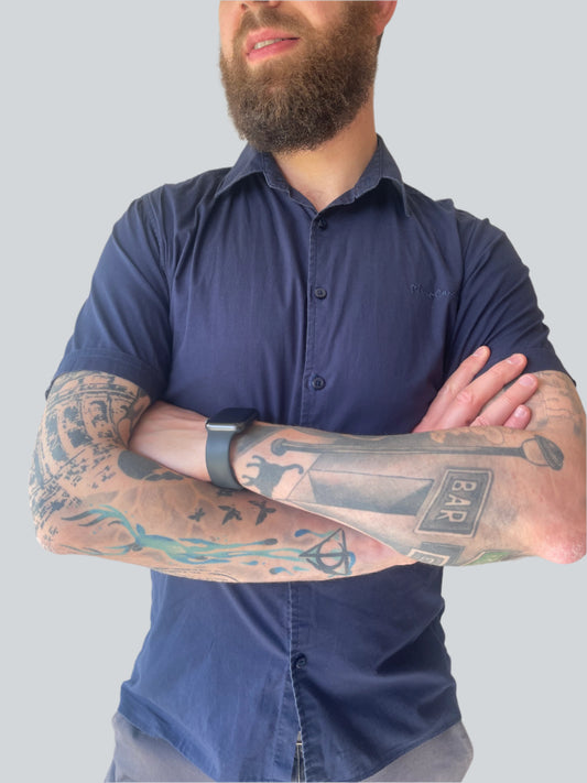 тъмносиня риза с къс ръкав от Pierre Cardin