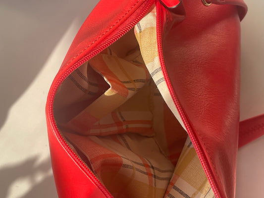 red hot faux-leather handbag